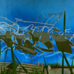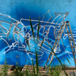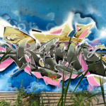 Graffiti artist RATH managed to a get a burner in with BACON and KWEST, in Toronto. This piece was part of a collaboration with the First Nation (Native Americans).There was a First Nation Elder who was illustrating the First Nation creation story; the story in portrayed in 10 circles, representing a combining of oral traditional storys from Elder councils going back generations. the Circles Start on the other side of RATH´s wall. He used a combination of FLAME BLUE and MOLOTOW PREMIUM to get this done.