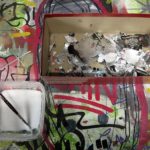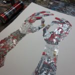 “Some collage work I have been playing around with recently. The labels are a bi-product of me crushing the Burner cans flat to paint faces on them. I decided to the the discarded Chrome Burner-can labels to make new pieces of work. From crushing the chrome cans, often with paint still in it, the chrome paint has drenched some fo the label. Beautiful result. Really enjoying this process. Waste nothing. Here’s a preview of some of these works.”