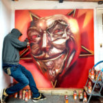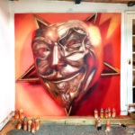 British graffiti artist REPLETE recently got back in his studio and found time to finish this copper canvas piece he started last year based on the iconic Guy Fawkes mask using MOLOTOW™ PREMIUM and a lot of COVERSALL™ COLOR copper and URBAN FINE ART Spraypaint metallic gold!