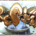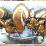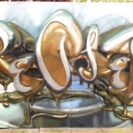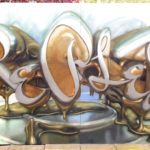 British graffiti artist Replete goes back to his roots as an animator and created this animated piece that builds on the foundations of the first bronze letters and then overlays a cursive script on top. Painted with MOLOTOW Premium and URBAN FINE ART Metallic spraypaint.