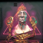Replete’s Neon Classical series continues with this wall featuring the Greek god Pluto, lord of the underworld and god of wealth. A new painting technique was employed to create it using the 3 new MOLOTOW PREMIUM sand tones.