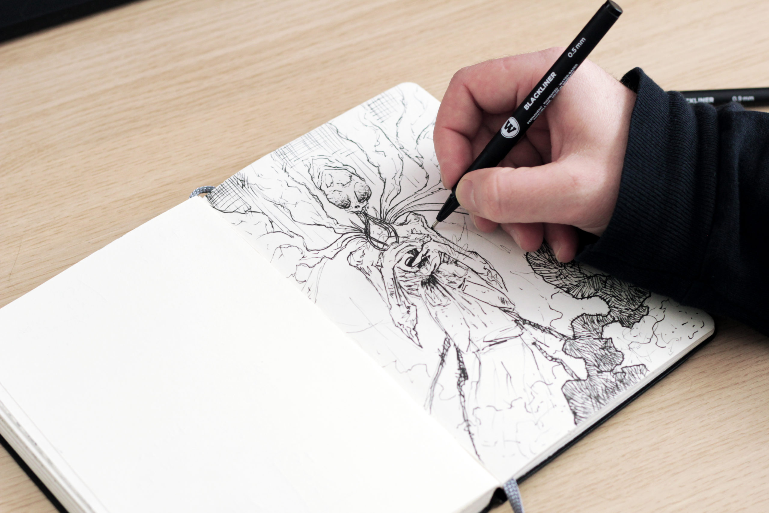 Bleak, dark and vibrant – Sanddorn Art is an Ulm based artist with a preference for everything music, movie and morbid. He prefers drawing black works and illustrations, especially with the water-based, but permanent MOLOTOW BLACKLINER range but sometimes digital colorful artworks and medias as well. He kindly shared a few photos of recent works and details with us to be find below! You can find more of his works here: https://www.instagram.com/sanddorn_art/ and here https://www.facebook.com/SanddornArt/