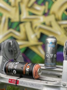 Graffiti artist OSTEO closing the summer out with this razor sharp freestyle:“This piece was painted with mostly all FLAME PAINT and with a few cans of MOLOTOW Premium. Usually when I paint I try and keep it to 3 – 3.5 arm lengths, this one is 5 arm lengths so I used buff paint for the base coat of the fill and 3D. In the fill I used hemp buff with FO mustard dark, FB olive, FB transparent white, FB white. I used FO black for outline with premium grasshopper in the 3D. The background I used FB blackberry and FO grape with a FO traffic purple forcefield with a premium tilt bubble pink highlight. Also some FO neutral gray middle with a FB riviera outline.”