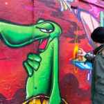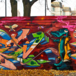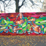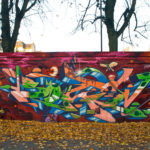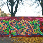 “My friend Tiws and I had a visit the other day from his TDA crew mate and Ireland graff president Rask. Tiws had already planed a banging color scheme and I where on the background showing some love to good old Vaughn Bode like I have been doing a couple of times this year. The weather in Copenhagen have been shit in October and with Rask bringing a bit of irish rain on top only made it worse, so with only one day without rain we had to hurry the pieces and I could finish the background over the following week!” (Soten)