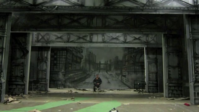 “The stage decour for the now successful danceshow is painted by the international known street/graffiti artist PUPPET interpreted with his own gridstyles. It was inspired from Drottningholm Palace Theatre, Stockholm, 1766 rococo theatre with its original eighteenth century stage machinery mechanisms 3 dimentional moving painting.”