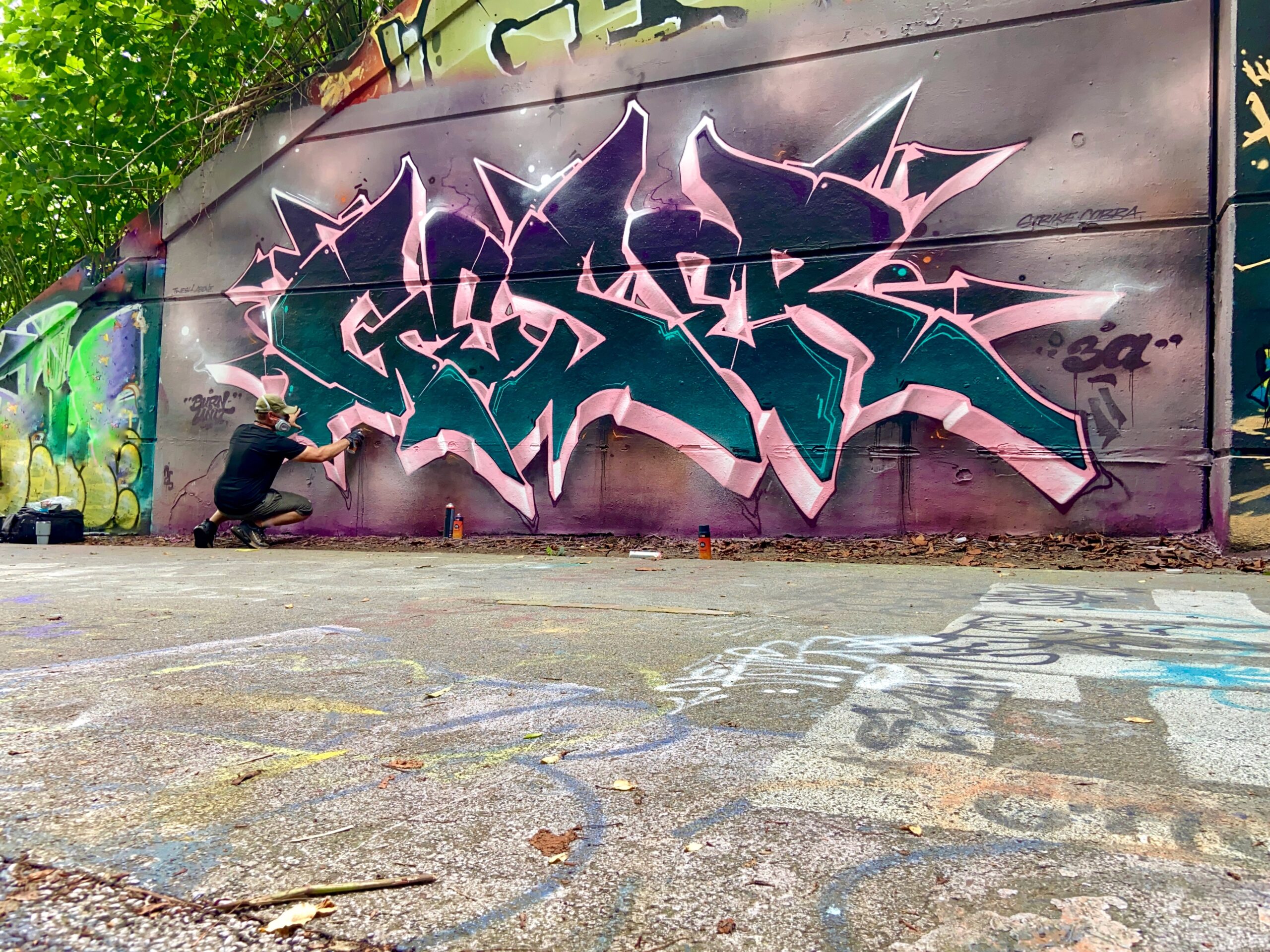 Dutch graffiti artists Mega, Romeo and Etrs of the Nasty Sons Crew painted the headquarters of Younger at Heart in Zutphen (NL) using MOLOTOW Premium. Inside the building is a vintage record store with lots of 80s memorabilia. The people from the shop asked if they could paint it in 80s style… so they did….