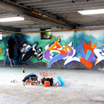 “Our friend Chuck invited us to paint a production wall in an abonded factory. After seeing some pictures of this great spot we decided to paint it during a 2-day painting session. We used bright colors for our pieces because we thought it would be a nice contract with the dirty and decayed environment. That worked out very well. We had a great time at this cool spot and painted 3 pieces in total. “