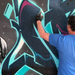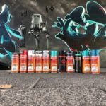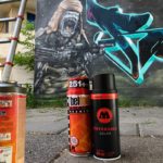 The trio used MOLOTOW PREMIUM colors Petrol and MOLOTOW COVERS ALL COLOR black, together with PREMIUM Swet 100 red, Petrol blue and Lipstick for the fill and Riviera and with white for the outlines. For the background several greys were used together with Green tea to make a fog effect at the bottom of the wall!