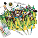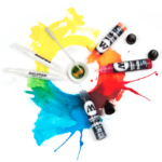 This is more than a simple fiber pen: with 24 rich colors and the corresponding EMPTY TWIN individual color gradations easily can be mixed. The soft brush tip with genuine brush feeling and the 2-6 mm broad tip (both exchangeable) make variable stroke widths possible – perfectly suitable for all design, watercolor and graffiti applications. For professional brightening and shading there’s also the compatible BLENDER PRO Aqua Medium available – without losses of durability and quality.