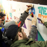 The Paint Club gathered a great Team of Urban Artists to realize a fresh idea. Clemens Behr, Tim Robot, Wurstbande, SAM Crew, 44Flavours, Klub7 and Johannes teamed up painting together on Canvas using the Molotow ONE4ALL™ products live at the Picknick Club Berlin Mitte. Have a look at the clip above and the photos after the jump!