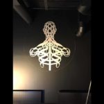 I only had to transform the head and back figure to a bass guitar where the spine ended like a guitar neck with stings, head and tuners. The design for the Bar was also pretty obvious and ready made. The Bar is a place for meeting and conversation. And the "Spin" profiles facing each other, communicates that as well. With the design ready made up, it was just working hours to finish off!