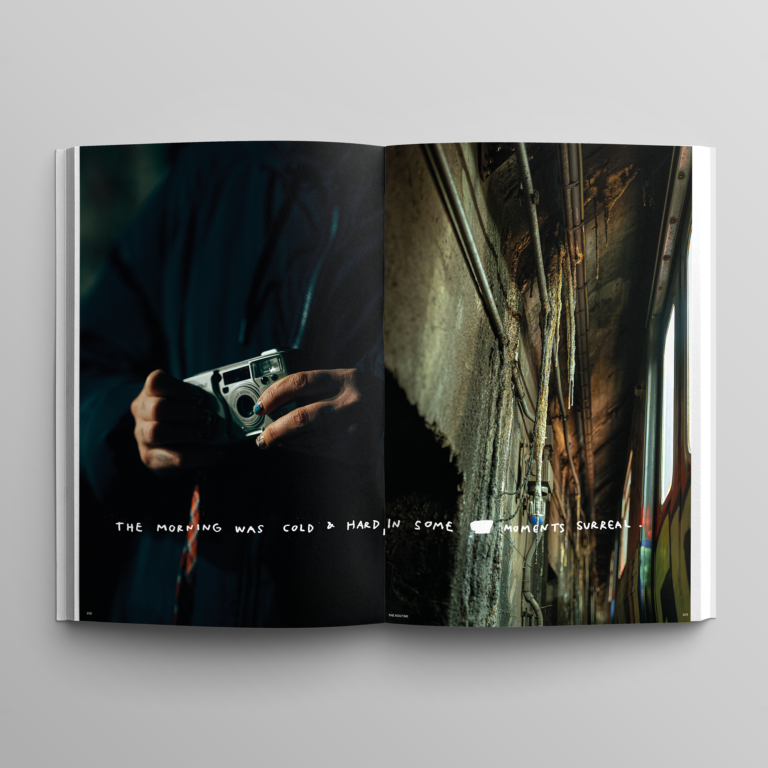The 224-paged hardcover tells the chronological story of befriended writers who first tick off their list to hit the local subway once only to find out that the city has way more to offer for ambitious train writers. With each new trip to NYC they professionalize their missions which leads to concept end-to-ends, full colour wholecars and even wholetrains. Their actions are separated into six chapters and accompanied with reflecting texts and stories on selected actions.