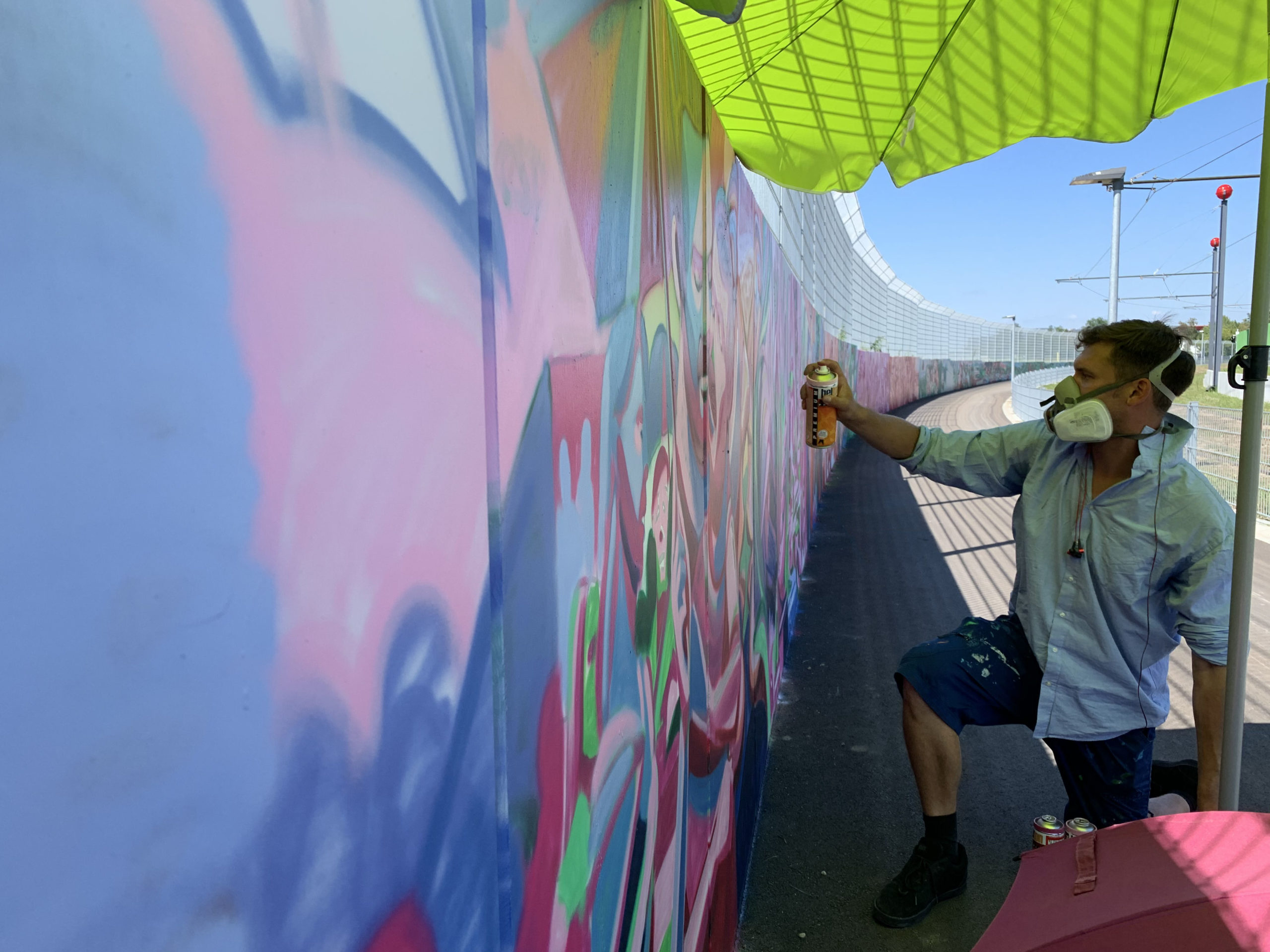 The Graffiti artist TOM BRANE just recently painted a 330m long wall in Freiburg, Germany right next to the local SC Freiburg Soccer stadium. After we´ve watched this TV reportage about the project we thought that´s very interesting to share with you here on our Website´s magazine, not just because the 600 squaremeters were entirely painted with a wide range of MOLOTOW PREMIUM colors, but also the artworks are very nice and extremely well done!