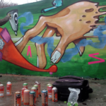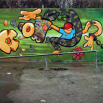 ” Hey ho, let’s go to watch our first video of the year from AFX crew! We were paint a fresh skateboard and Tony Hawk theme wall at Budapest. Koen made a skater theme because when he was a child. Kast and I used a lot of time the legendary tony Hawk’s Pro Skater 2 game, so we wanted to show the feeling of the game when you are next to a wall ; ) I painted the legendary ” Screaming Hand” icon too because we are the similar years old! Thanks to Neversoft and Tony Hawk to made my childhood with this game. It was a great influence to start painting graffiti and listening punkrock music.” (FORK/AFX)