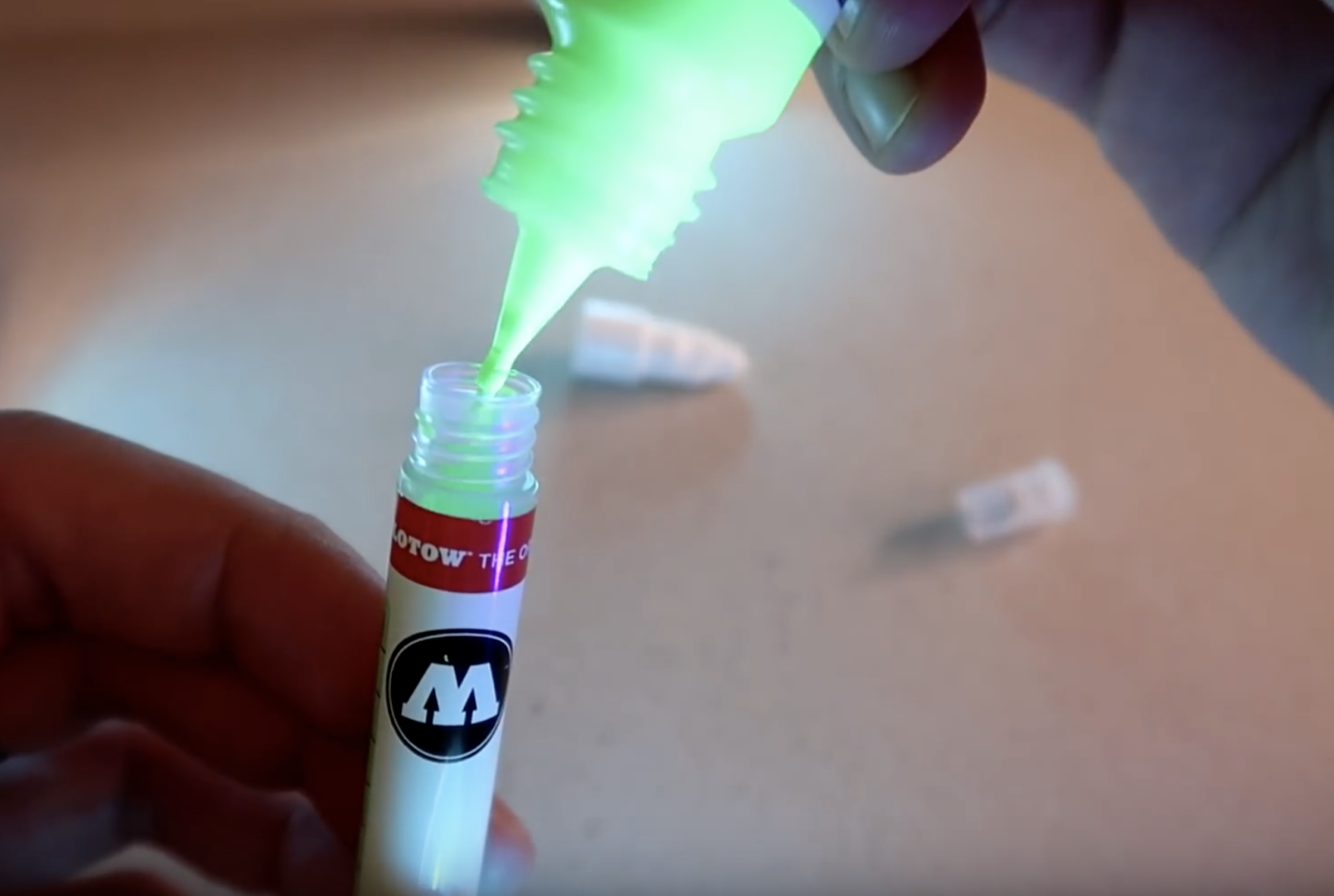 French artist and YouTuber Jordan Molina aka TutoDraw (Instagram) just went online with a very special box to purchase via drawmarket.fr from now on! In the video you can watch him unboxing and demo a few MOLOTOW products such as the MOLOTOW LIQUID CHROME, the ONE4ALL Refill 30ml neon green filled in MOLOTOW empty marker 111EM or the GRAFX UV-Fluorescent Pumpmarker.