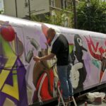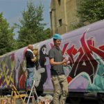 Positive Arts arranged for 15 of the UKs top graffiti artists to descend on Josephine Avenue and spray paint the tube train live, which caused a stir and was great to watch. The train went on display in Windrush Square shortly after the event. The positive arts team also ran children’s graffiti art workshops with local school children. The artists producing live work really appreciated the hands-on feedback from visitors which has been motivating and encouraging for future projects. Some footage after the jump, more here!
