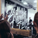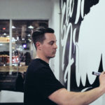 Watch as graphic artist Ben Johnston draws an 12’x16′ artwork inside the Vitaly x Friends Pop-Up Shop in Toronto. Drawn over the span of 8 hours with MOLOTOW Empty Markers filled with MOLOTOW COCKTAIL Covers All Ink as well as the MOLOTOW MASTERPIECE 60mm Marker, the line “If I could see all my friends tonight” comes from an LCD Soundsystem song and sums up what our annual pop-up shop is all about — a gathering of old friends, new friends, and soon-to-be friends all under one roof. Video and photos after the jump!