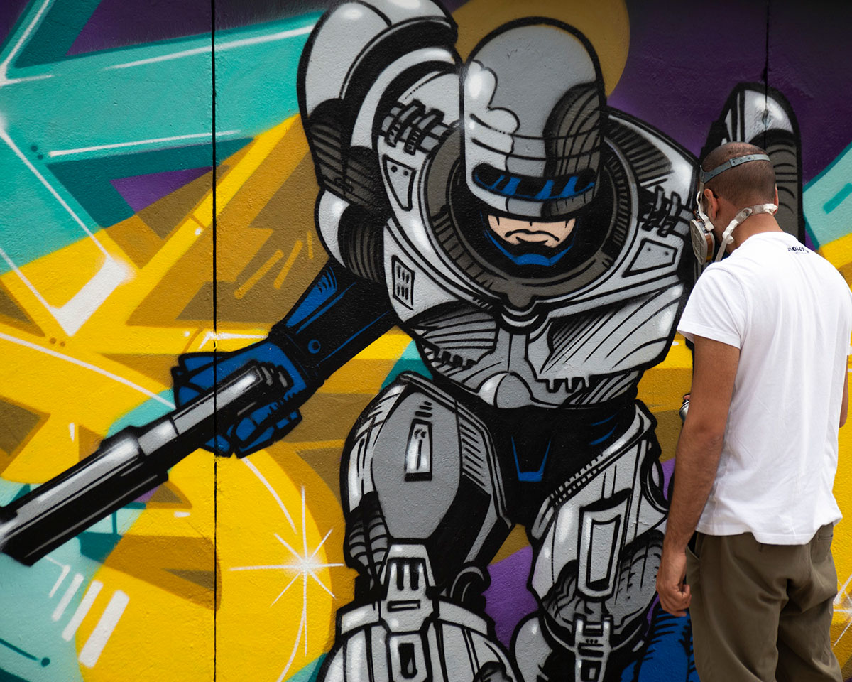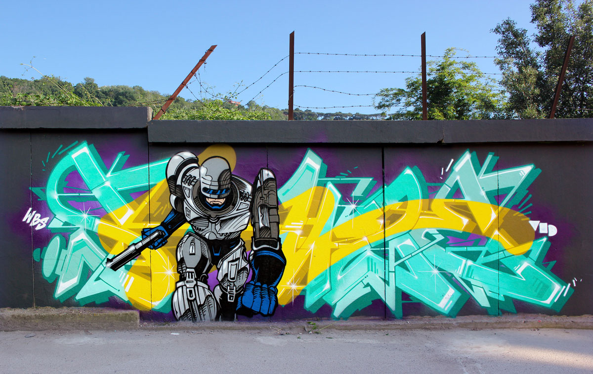 Here is a new wall by graffiti artist ZEUS40 who painted this fresh SUZE stylewith MOLOTOW PREMIUM, supported by a Robocop character painting!